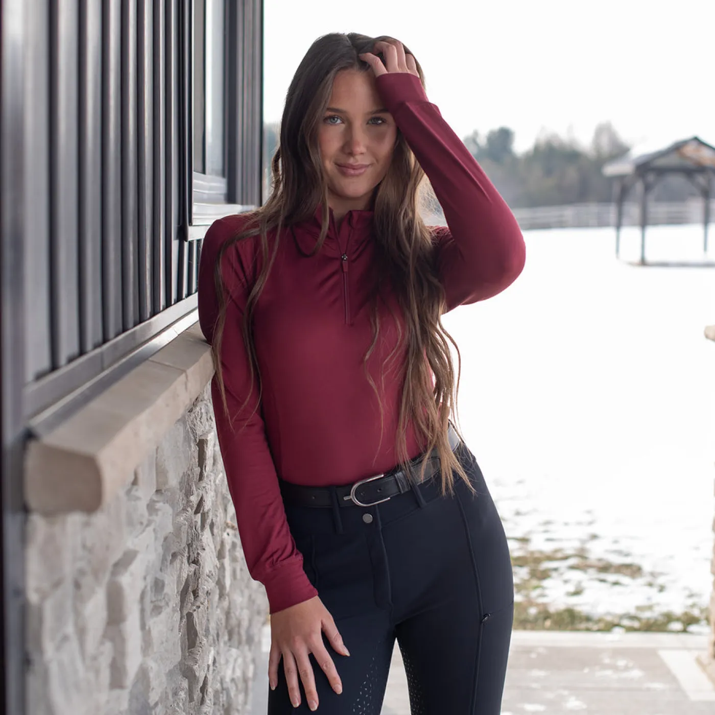 The TemTeq Sheridan Functional Top offers a technical training shirt for everyday winter riding. Constructed with soft brushed interior that is breathable for all day comfort. Quick-drying, soft, and stretchy shirt that may be worn alone or layered. Complete with shiny stitching along the seams.