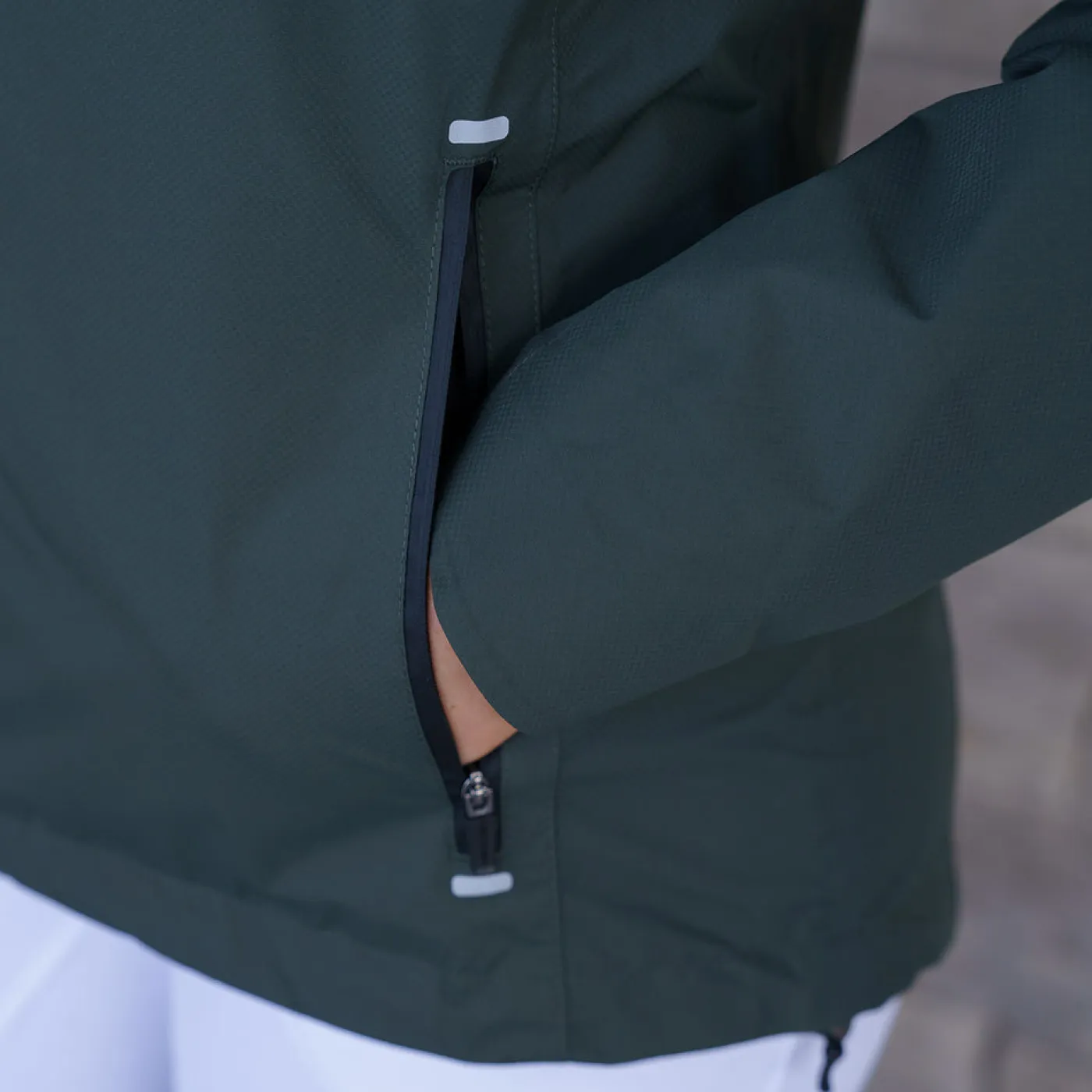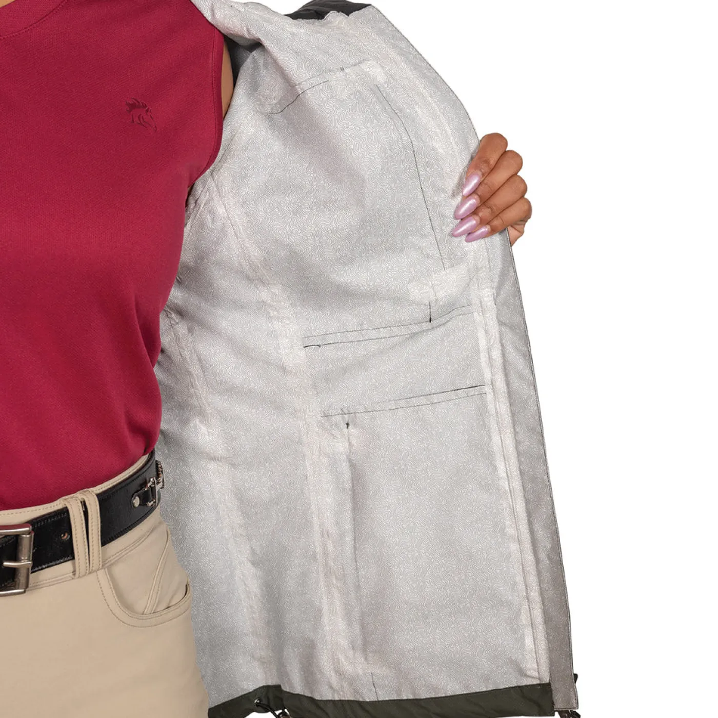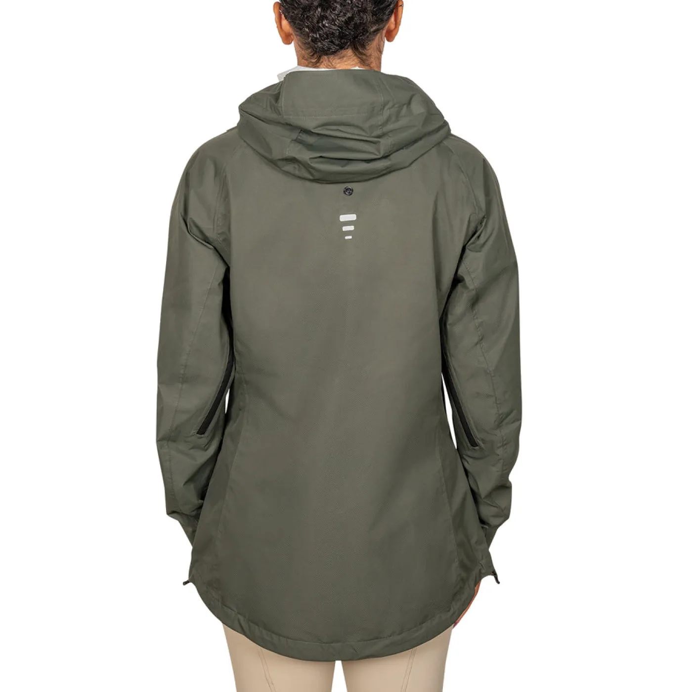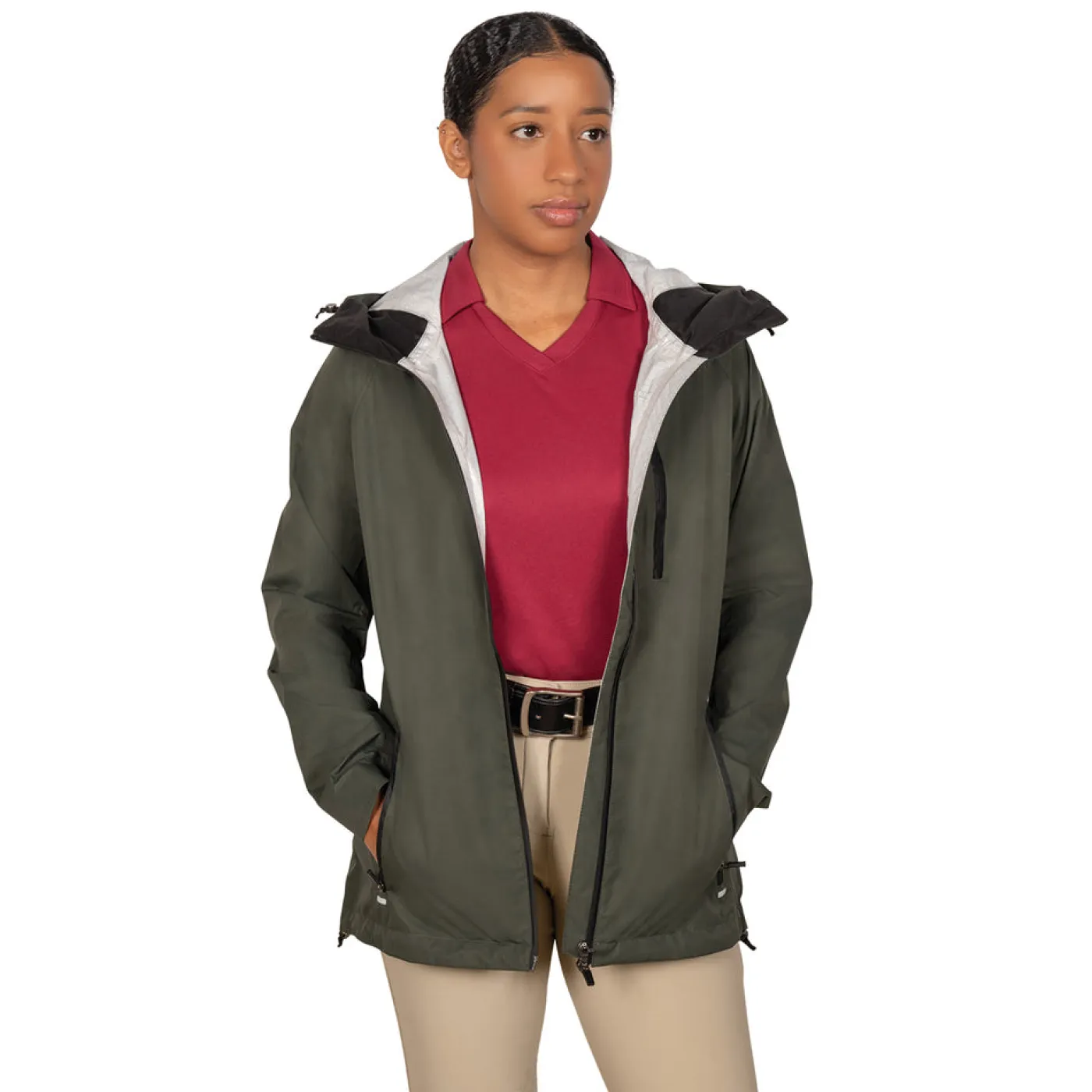 Suitable for everyday wear around the barn or while ringside at the showgrounds with fully taped seams to keep you comfortable and dry all rainy day long. Offers wind resistant zippers at the armpits to provide ventilation while helping to regulate your body temperature. The unique cuff design provides a snug fit and the back ensures added coverage while moving. Complete with an adjustable hood.